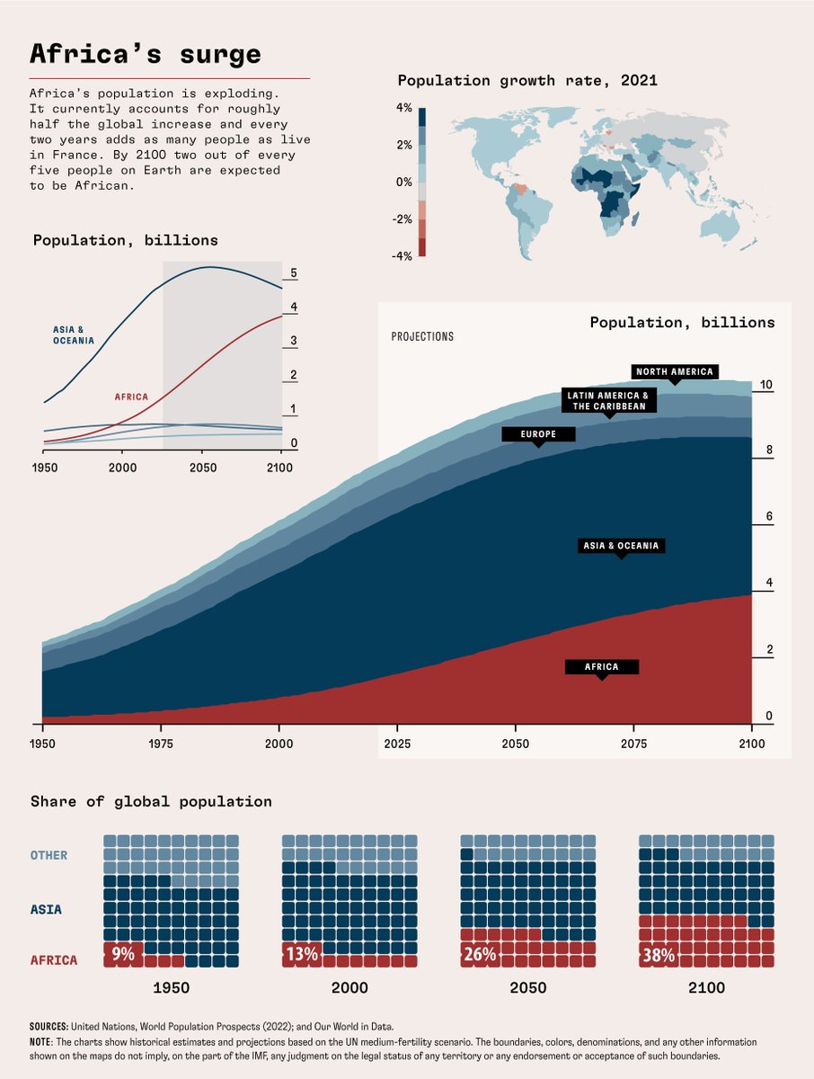 Africa’s Surge #chartoftheday (via @IMFNews) The UN expects just eight countries to account for more than half of the increase in global population over the next three decades, and five of those countries are in Africa.