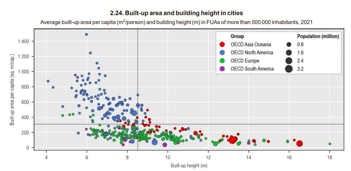 North American Buildings are Shorter #chartoftheday (via @JosephPolitano) Buildings in North American urban areas are unusually short compared to European and Asian urban areas, and they also tend to use up a lot more land.