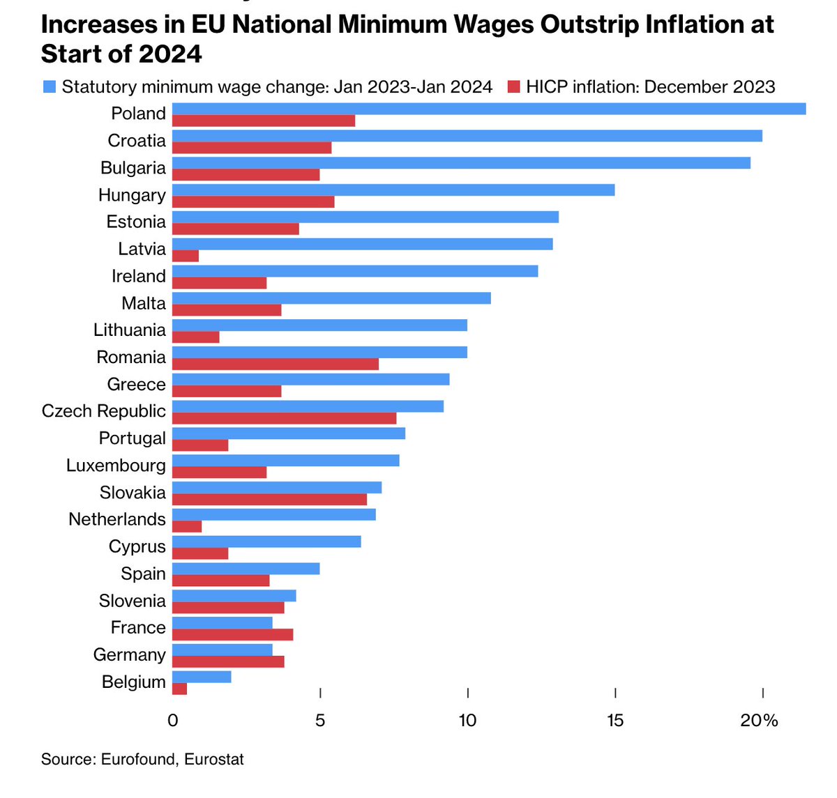 EU Minimum Wage Growth to Outstrip Inflation #chartoftheday (via @acemaxx) The fortunes of Europe’s lowest-paid workers are set to improve this year, as hikes in minimum wages outstrip inflation in many countries.