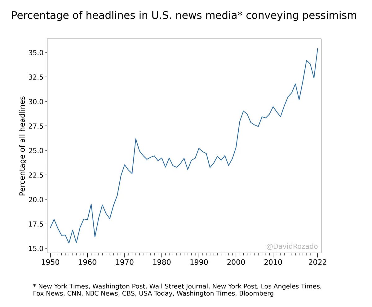 Pessimism in US Media #chartoftheday (via @jburnmurdoch) ~35% of US news media headlines conveyed pessimism in 2022, versus ~17.5% in 1950.