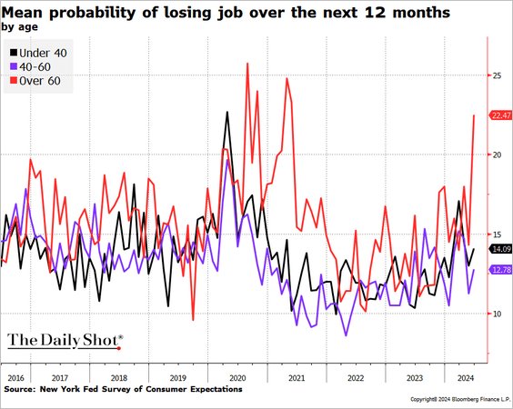 Mean Probability of US Workers Losing Jobs #chartoftheday (via @SoberLook) Older Americans are increasingly worried about losing their jobs, results from the New York Fed’s Survey of Consumer Expectations indicates.