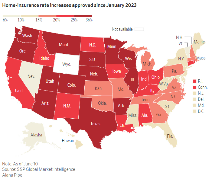 US Home Insurance Rates #chartoftheday (via @charliebilello) US home insurance rates have increased by ~20% since the start of 2023 and are expected to continue to rise, S&P Global Market Intelligence data shows.